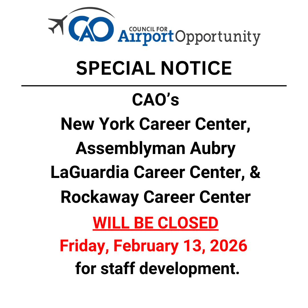 Kickstart your aviation career! Join us at the Rockaway Career Center for an in-person orientation about job opportunities at JFK Airport. Call (347) 562-2113 to reserve your spot!