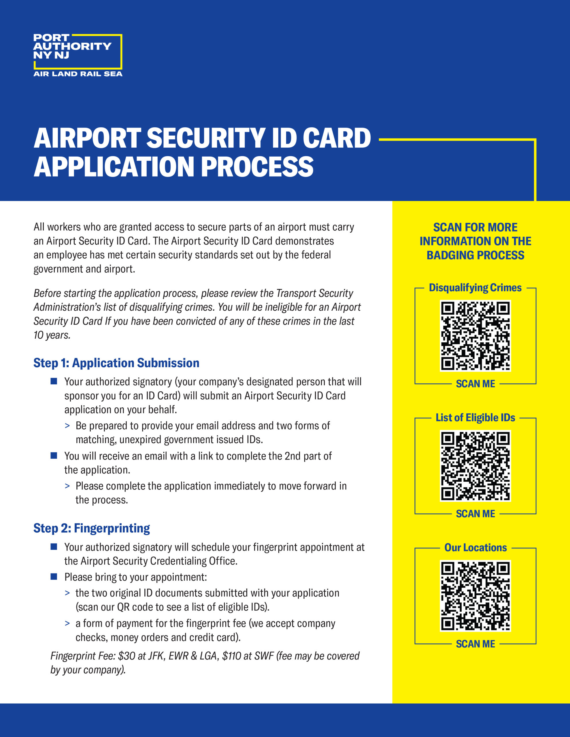 For more information, please visit https://www.panynj.gov/airports/en/aviation-security/new-applicant-process.html